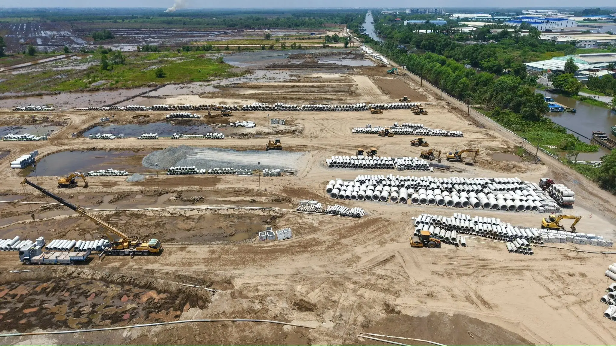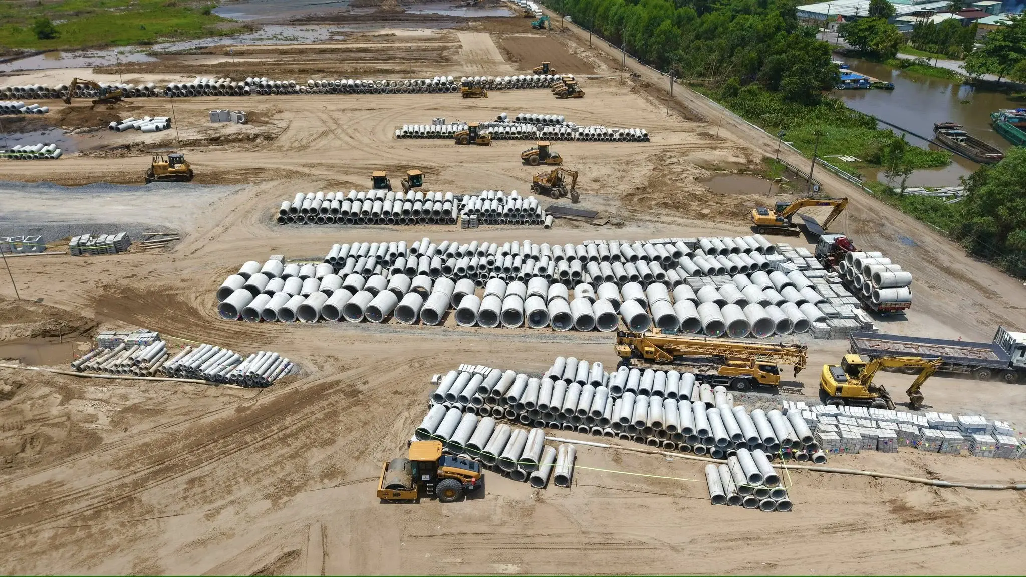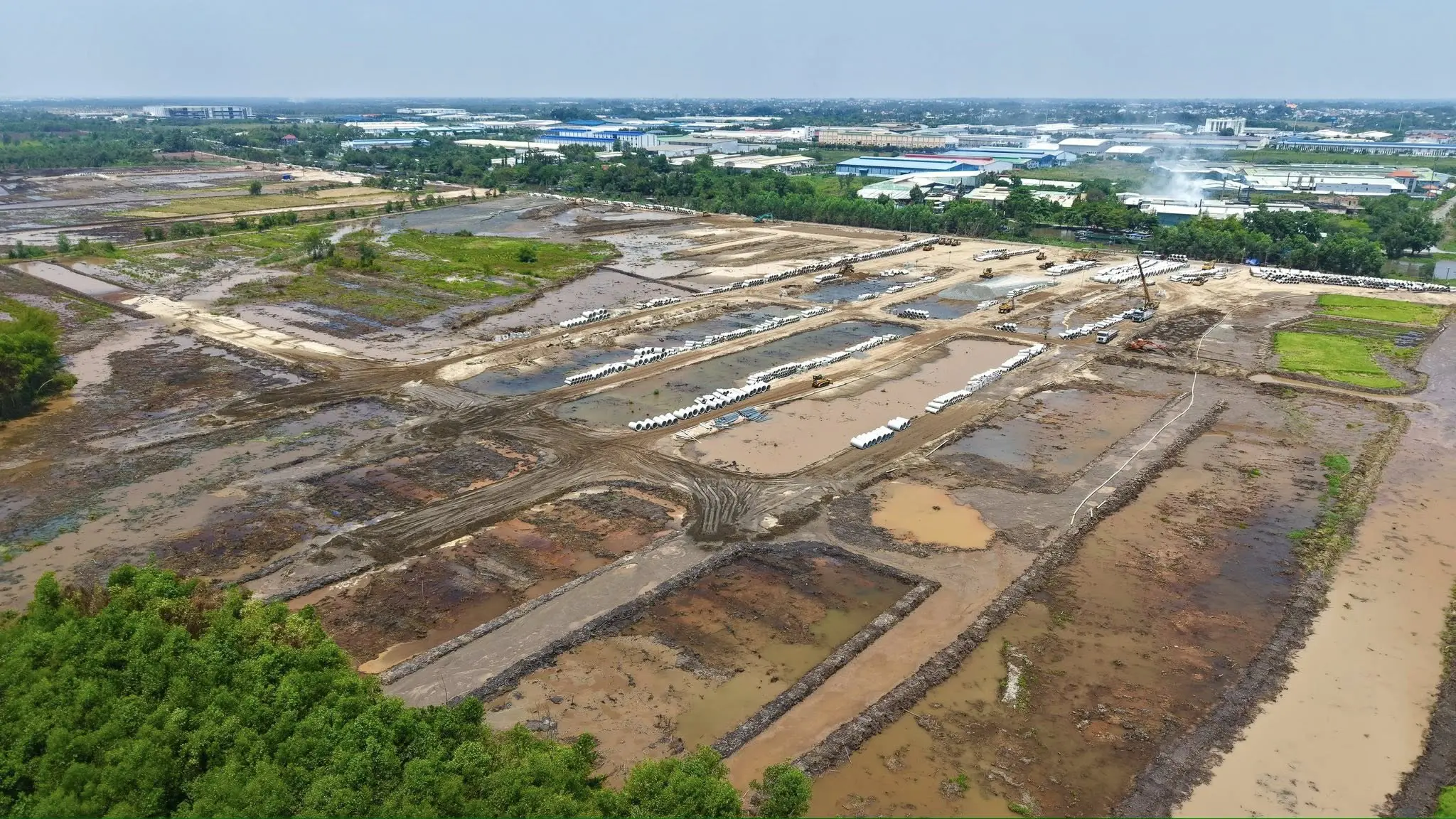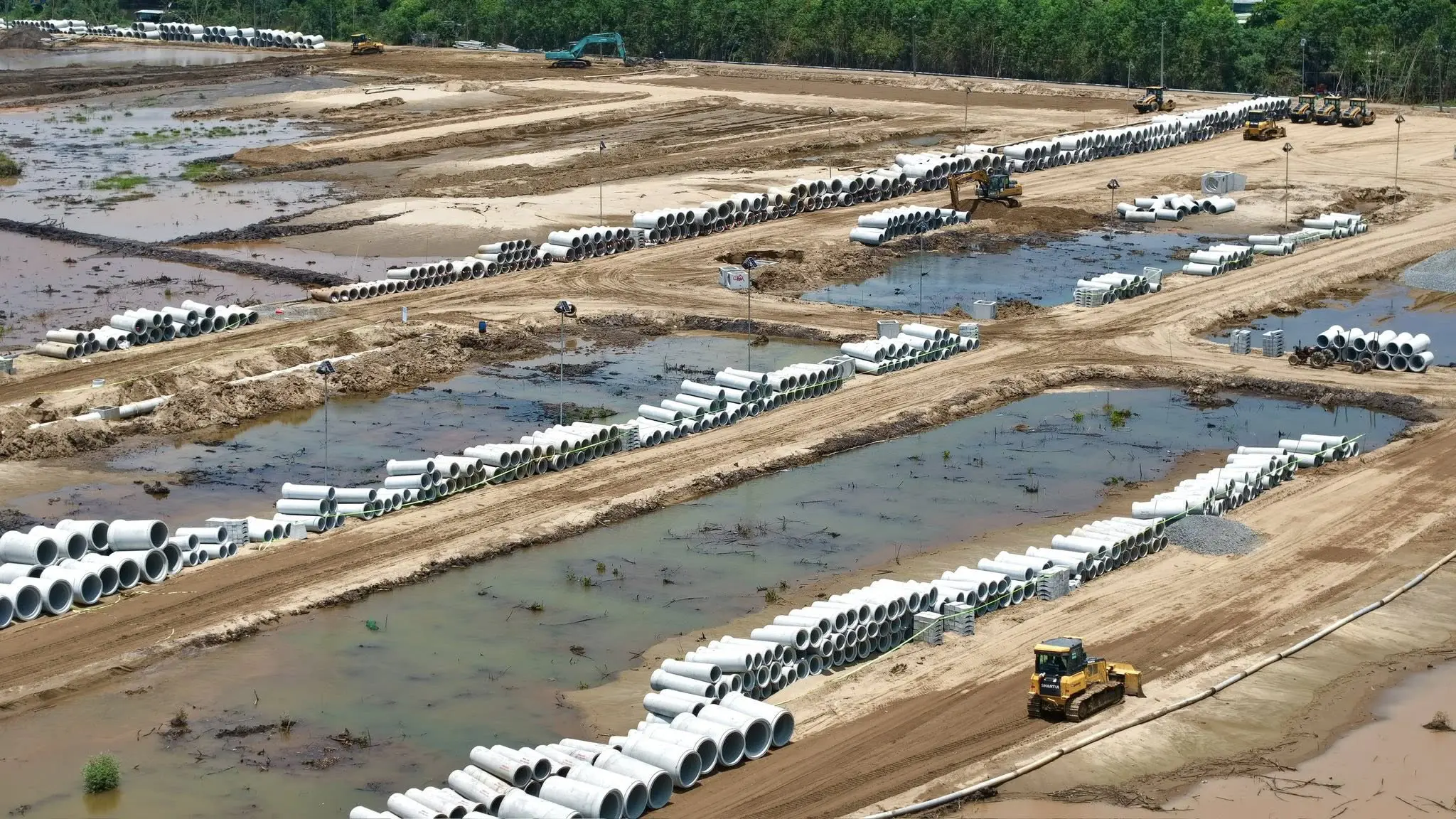 ⬩➤ Các lô đất khu nhà phố đang thành hình, hệ thống cống và hạ tầng đang được lắp đặt thi công